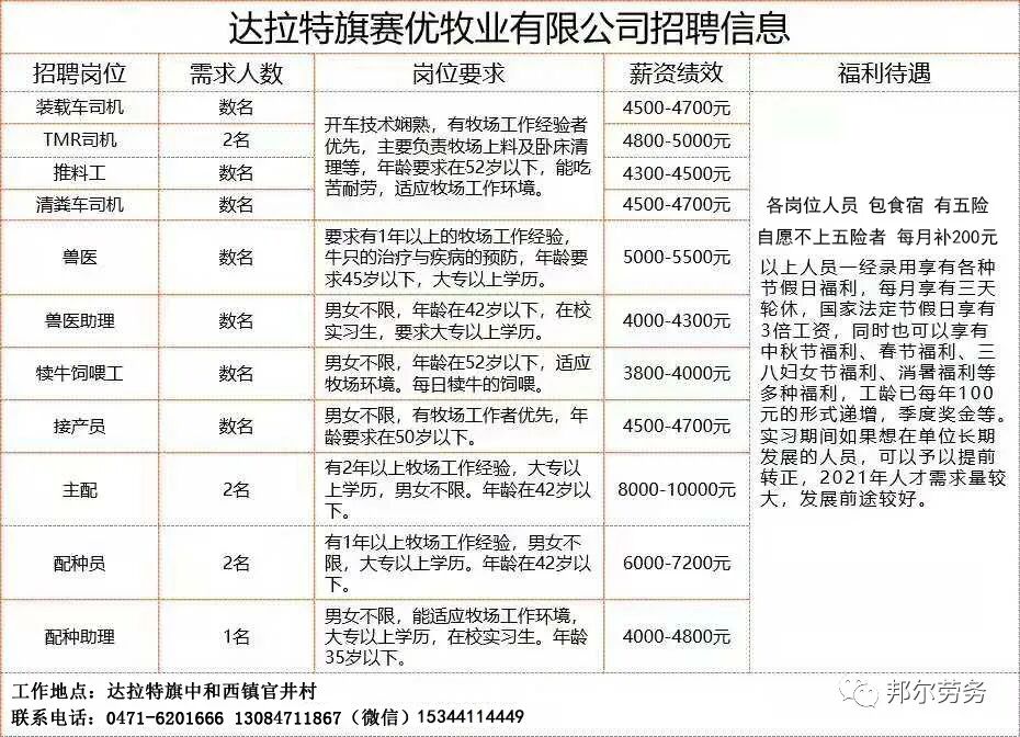 达拉特旗赛优牧业有限公司高薪诚聘
