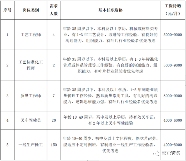 薪资待遇:3500-5000元/月+加班费+节假日双倍工资+免费住宿、班车+工作餐补助18元/天+技能绩效津贴+特殊岗位津贴+年终奖+节日慰问+五险一金。